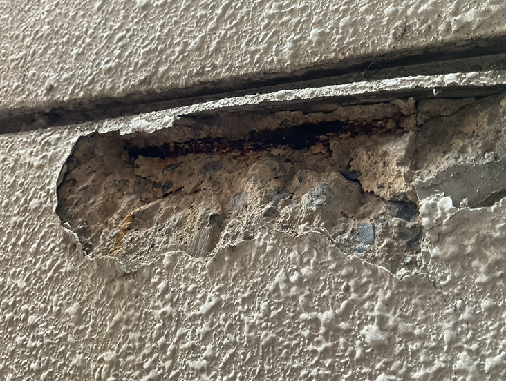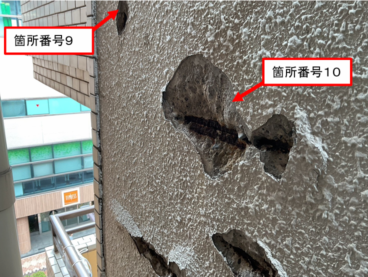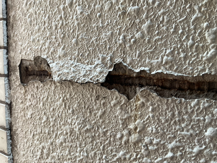 - 鉄筋爆裂によりコンクリートが押し出されている