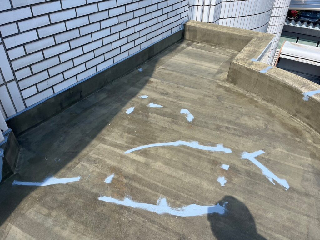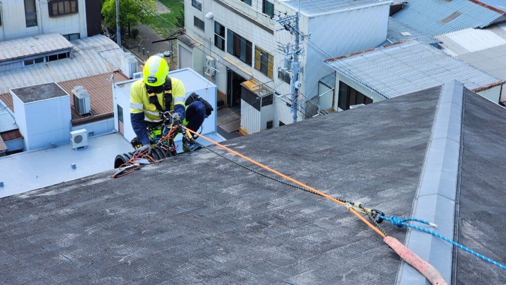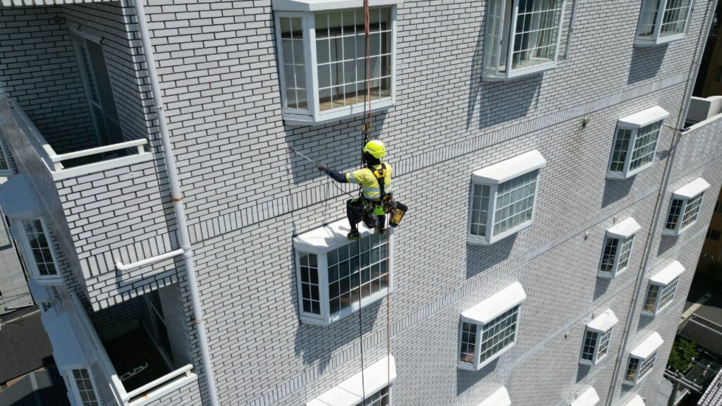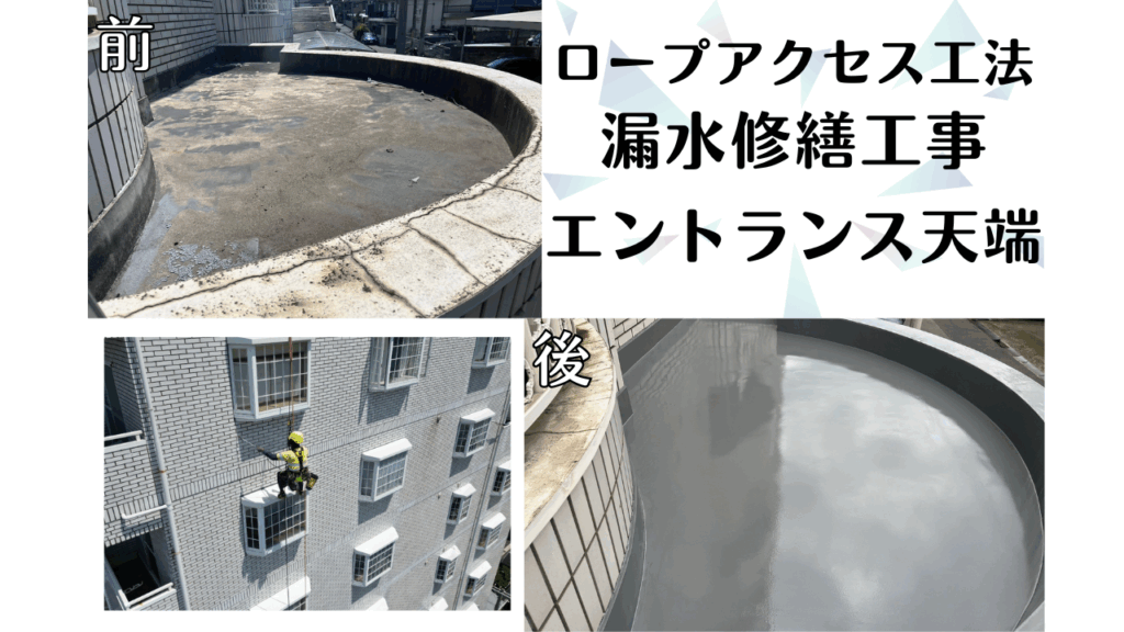 大阪市 10階建て ロープアクセス工法漏水修繕工事 エントランス 天端