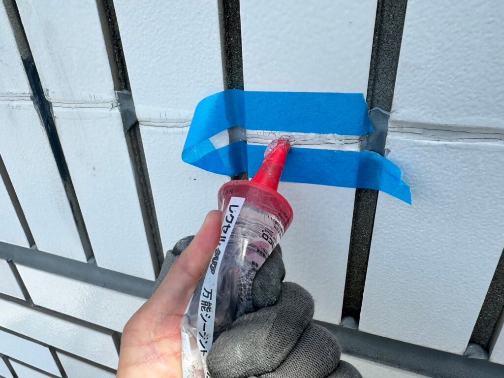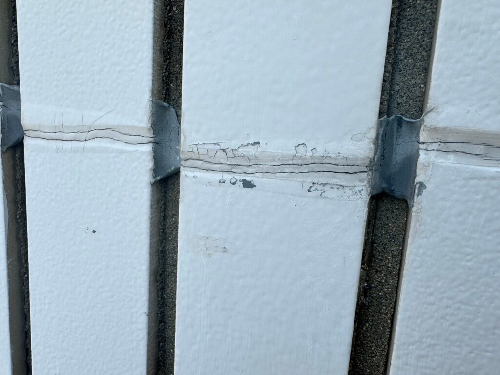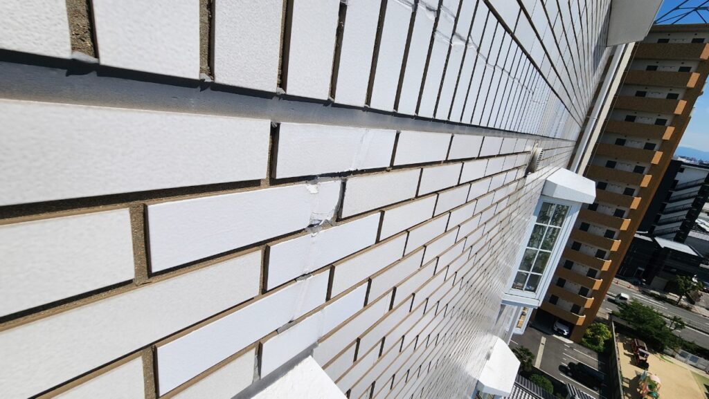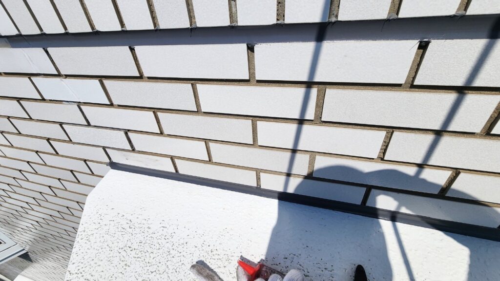 大阪市 10階建て ロープアクセス工法漏水修繕工事 不良部1 2025年12月18日 雨漏り箇所現状 ロープ固定箇所 ロープアクセス工法 ロープアクセス工法 ロープアクセス工法 不良部施工前タイル目地の劣化 施工前タイル目地の劣化 施工前前回の補修跡が見られます 目地不良部に無色透明なシーリング材の注入 目地不良部に無色透明なシーリング材の注入 タイル部シーリングシーリングの打替 シーリングの打替 不良部補修跡目地のシーリング処理 補修跡目地のシーリング処理