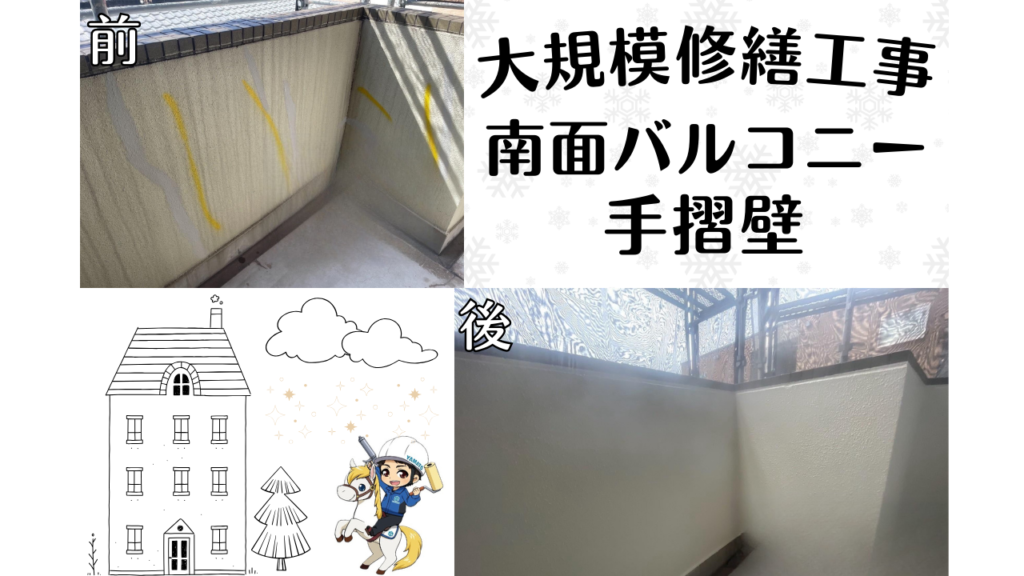 大阪市 7階建てマンション 大規模修繕工事 南面バルコニー 手摺壁