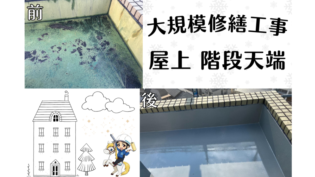大阪市 7階建てマンション 大規模修繕工事 屋上 階段天端