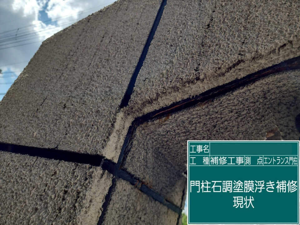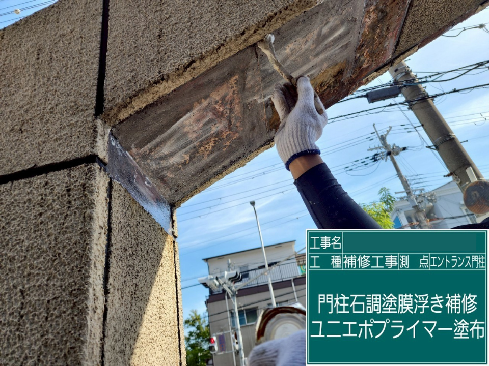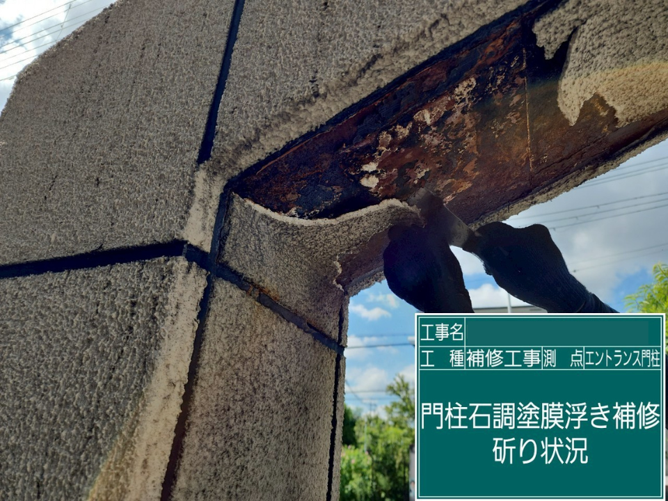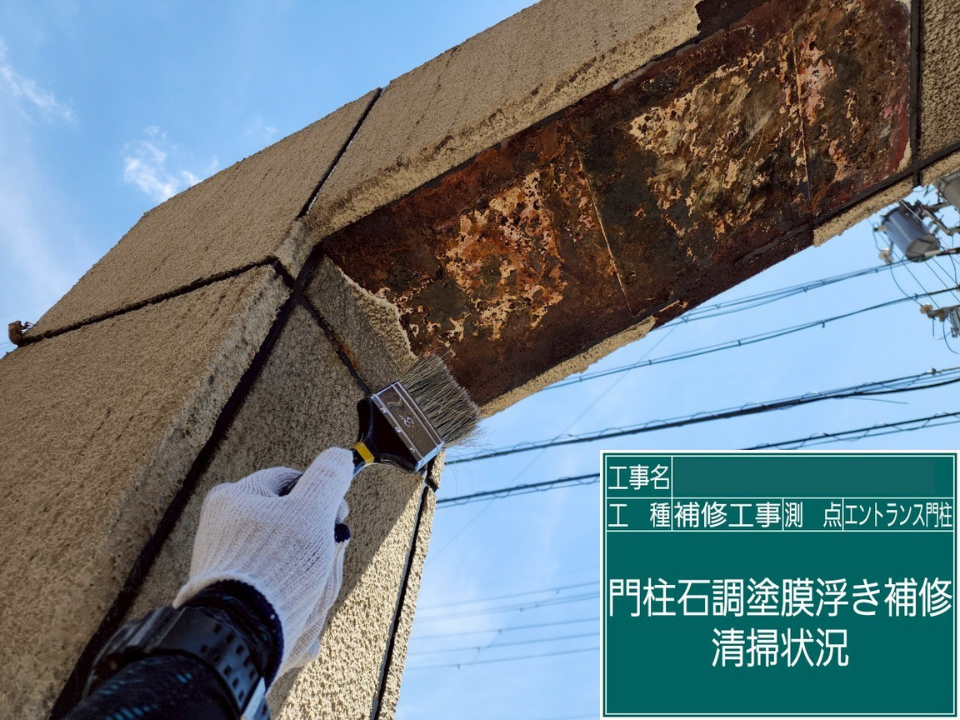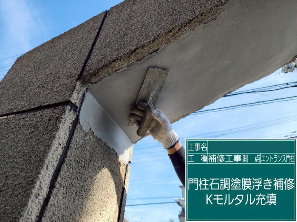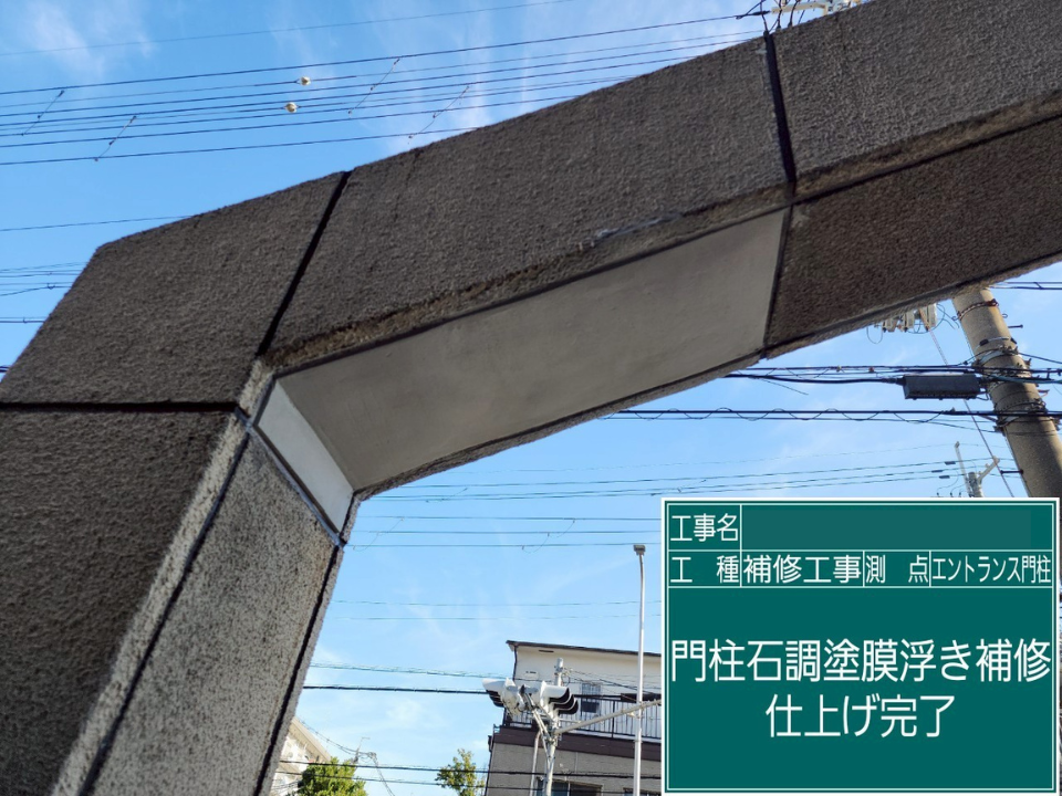 豊中市 4階建てマンション 大規模修繕工事 下地補修工事 エントランス門柱