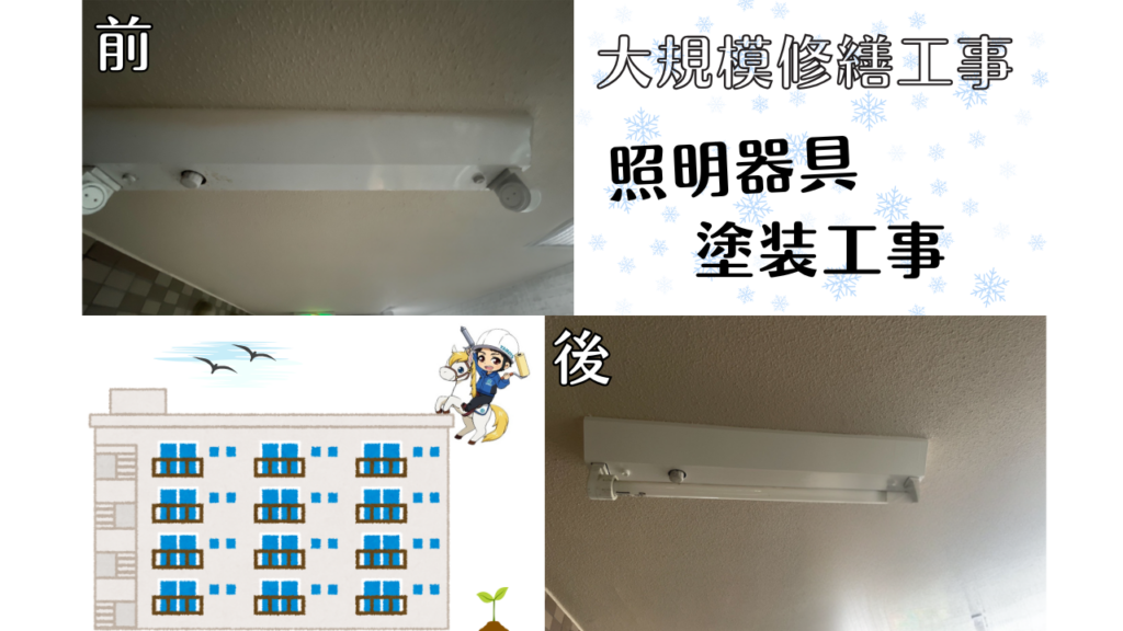 豊中市 4階建てマンション 大規模修繕工事 照明器具 塗装工事