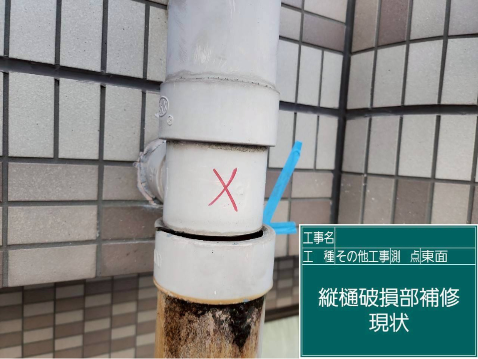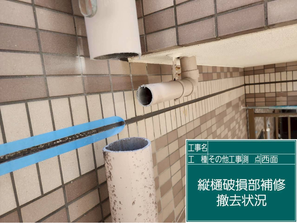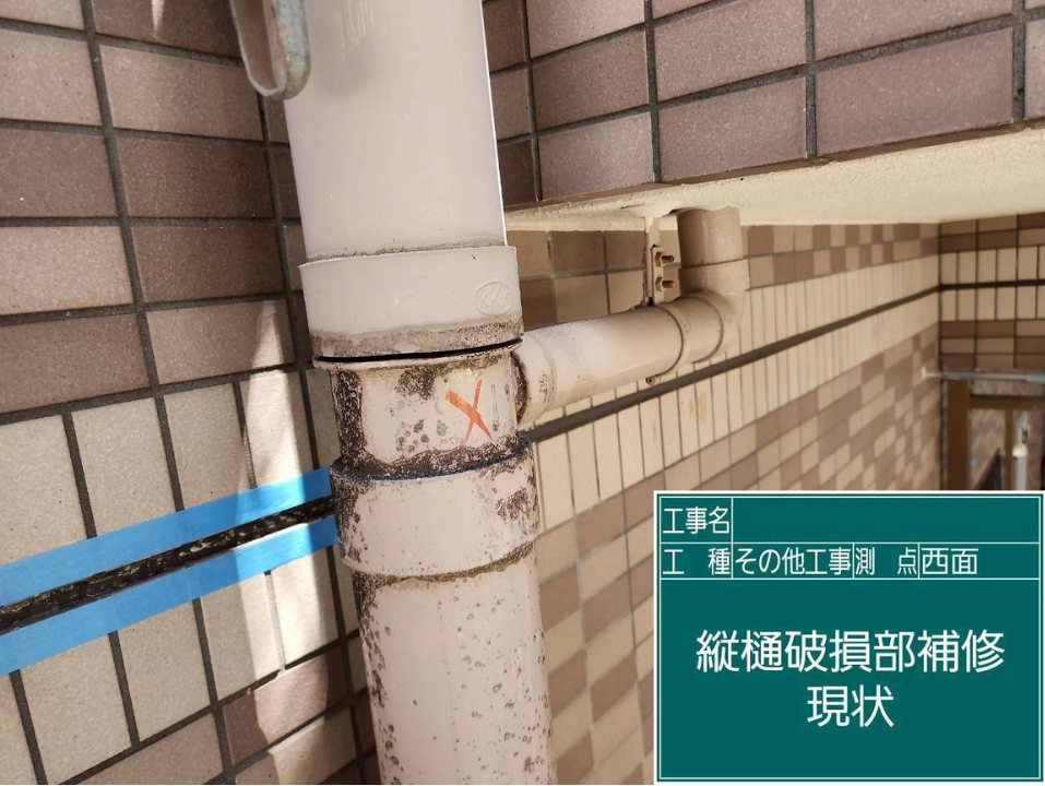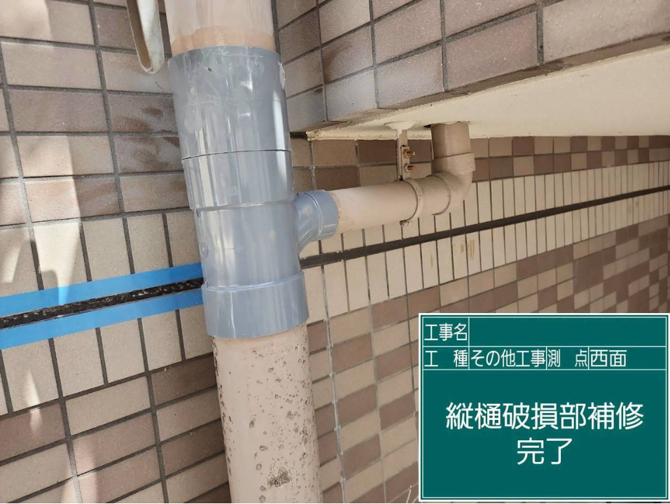 豊中市 4階建てマンション 大規模修繕工事 縦樋破損部補修
