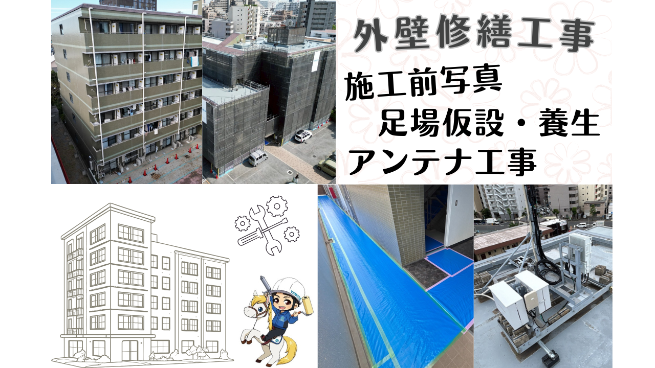 施工前写真 足場仮設 養生 アンテナ工事