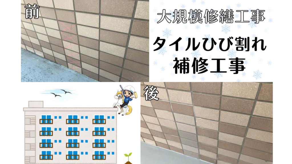 豊中市 4階建てマンション 大規模修繕工事 タイルひび割れ補修工事
