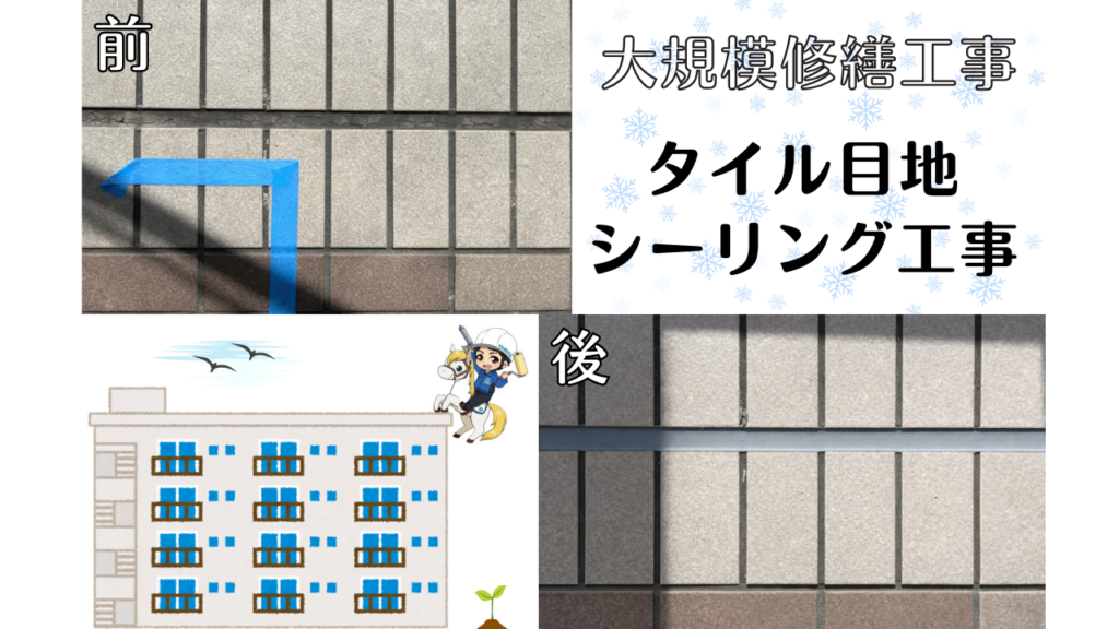 豊中市 4階建てマンション 大規模修繕工事 タイル目地シーリング工事