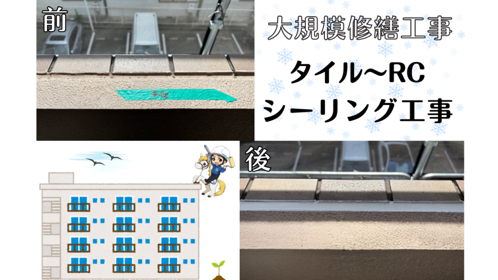 豊中市 4階建てマンション 大規模修繕工事 タイル~RC シーリング工事