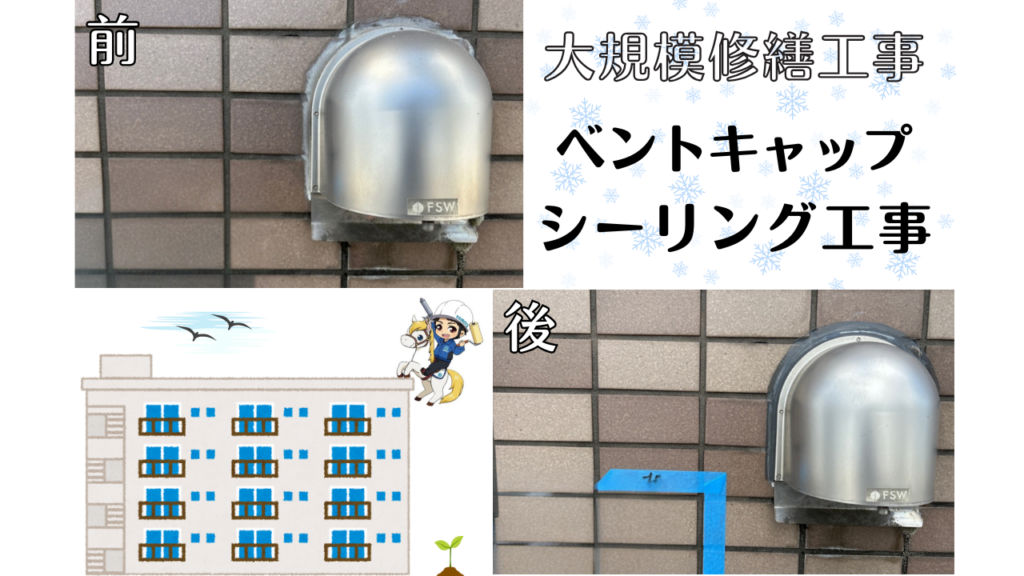 豊中市 4階建てマンション 大規模修繕工事 ベントキャップ シーリング工事