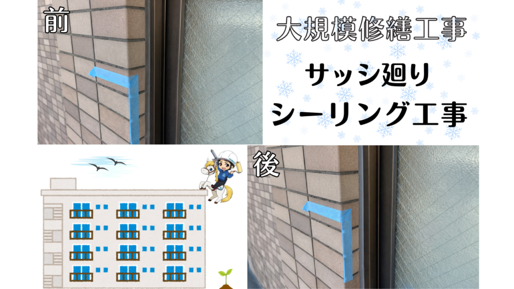 豊中市 4階建てマンション 大規模修繕工事 サッシ廻り シーリング工事