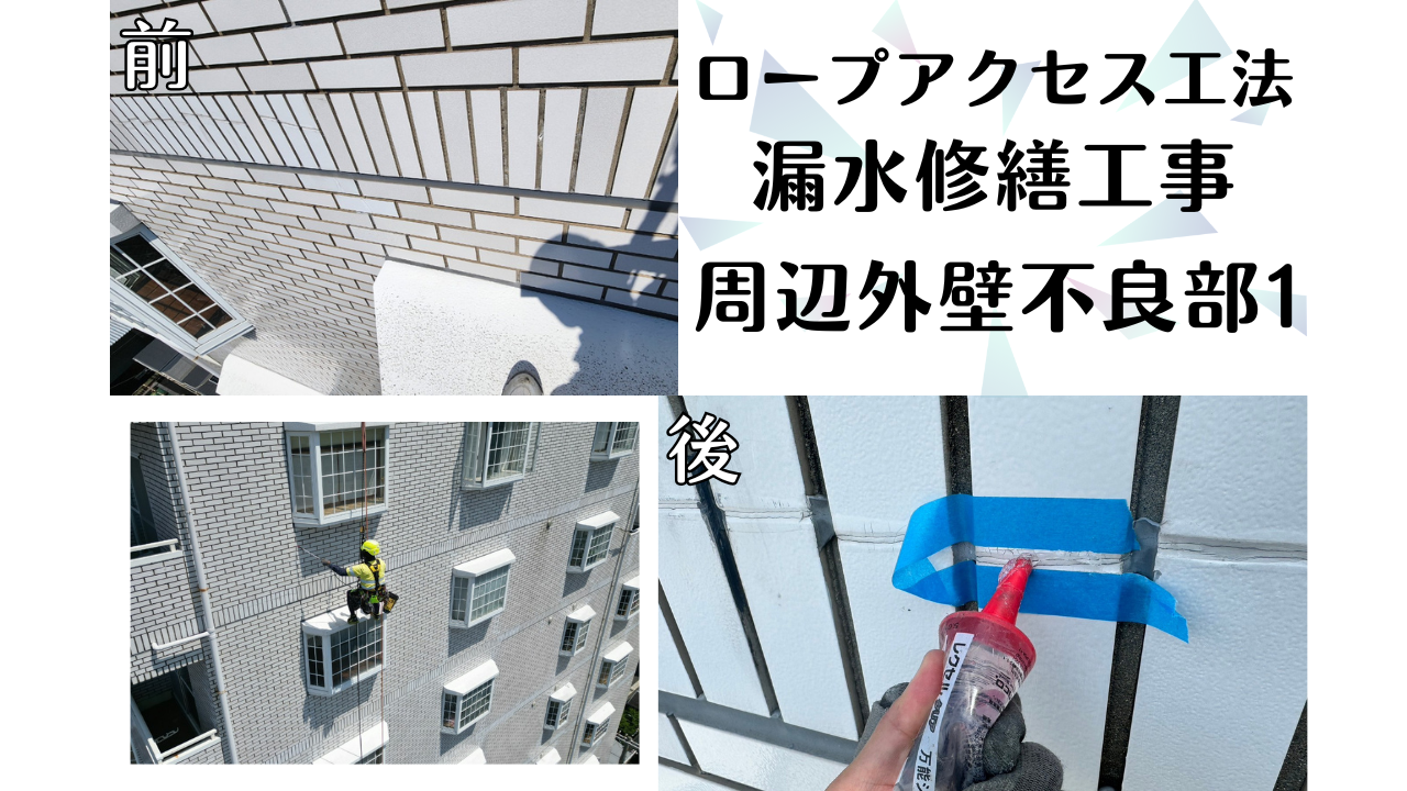 大阪市 10階建て ロープアクセス工法漏水修繕工事 不良部1